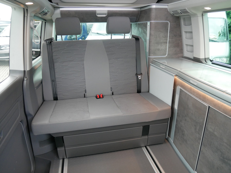 Verder is de California voorzien van zijn standaard uitrusting: 4 slaapplaatsen, elektrisch slaaphefdak, automatische airco, stoffen bekleding, elektrische ramen voor, elektrisch verstelbare spiegels, parkeersensoren voor en achter, parkeercamera achter, huishoud accu, 230 V aansluiting, stoelverwarming, 2 pits gastoestel, Android auto, Apple carplay, schoonwatertank 25 liter, Afvalwatertank 30 liter Waeco 42L compressorkoelkast ,campingtafel in schuifdeur, 2 campingstoelen in achterklep, verduisteringsrollo's in zijramen woondeel, achterklep en voorruit en stand kachel op diesel.