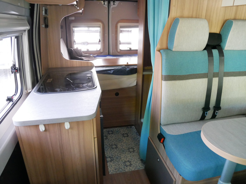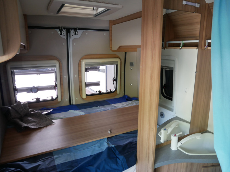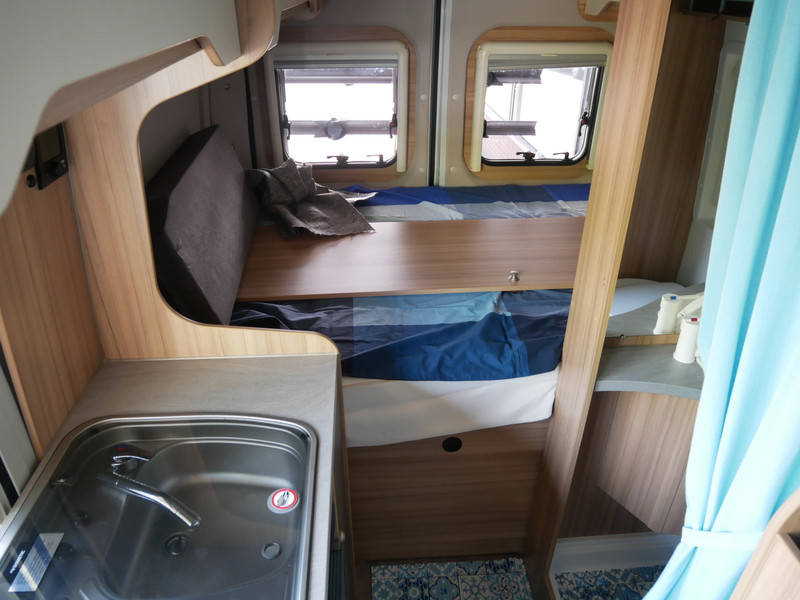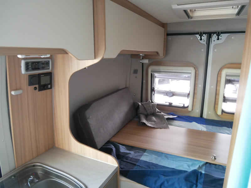 Maten: de camper heeft een stahoogte van 190 cm en het dwarsbed 140 / 120 X 195 cm.
