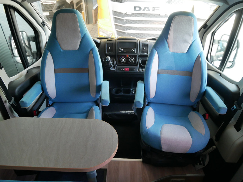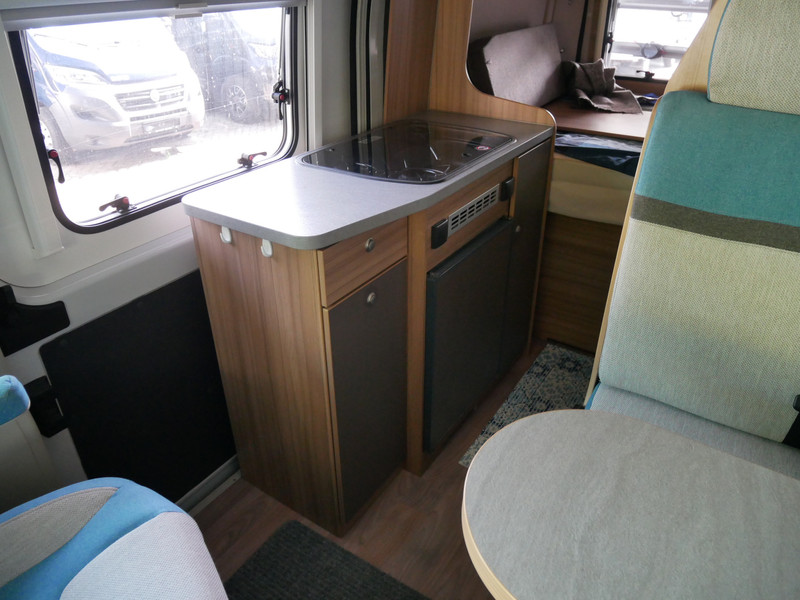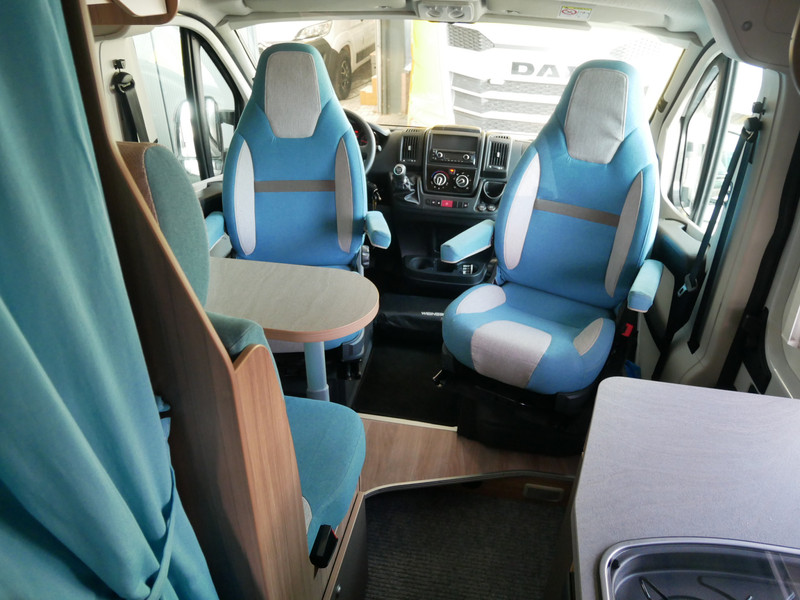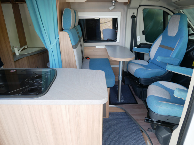 De camper is onder andere voorzien van een mooie afwerking met stoffen bekleding en moderne licht ogende tinten in het interieur, keuken met 2 pits kooktoestel, dwarsbed, cruise control, Truma kachel op gas, boiler op gas, compressor koelkast met apart vriesvak, wasbak, led verlichting, motorairco, zeer veel opbergmogelijkheden door de vele kasten, toiletruimte met doucheruimte, radio, bluetooth, een ruime zit met tafel en verduistering rondom.