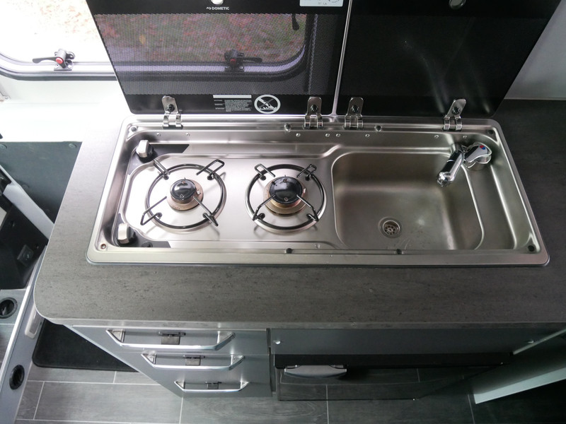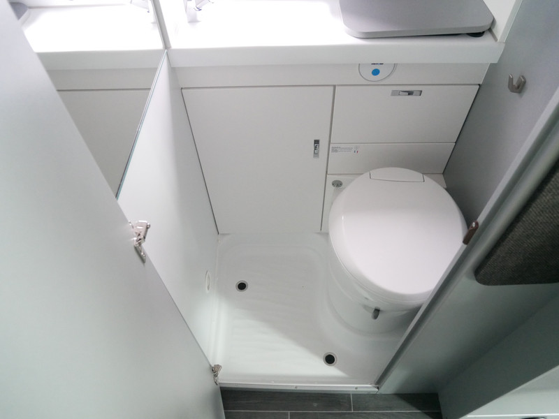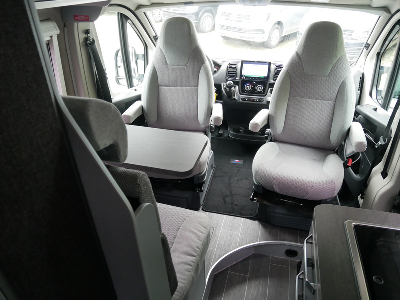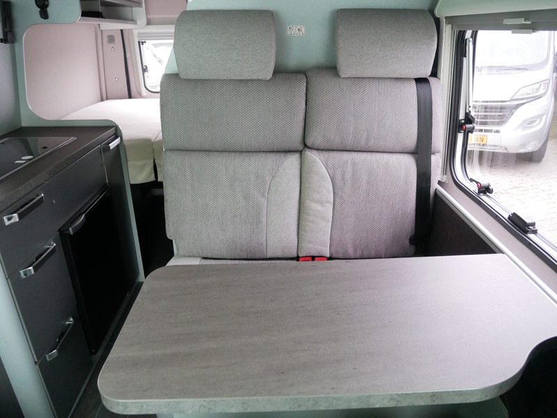 De camper is onder andere voorzien van een nette afwerking met stoffen bekleding, keuken met 2 pits kooktoestel, dwarsbed, slaaphefdak, cruise control, Truma kachel op gas, boiler op gas, compressor koelkast, modern en luxe ogende tinten in het interieur, wasbak, motorairco, zeer veel opbergmogelijkheden door de vele bovenkasten, toiletruimte met douche, een ruime zit met tafel, radio/cd/mp-3 speler, bluetooth, navigatie, Apple Carplay en Android Auto, achteruitrijcamera, trekhaak en verduistering rondom.